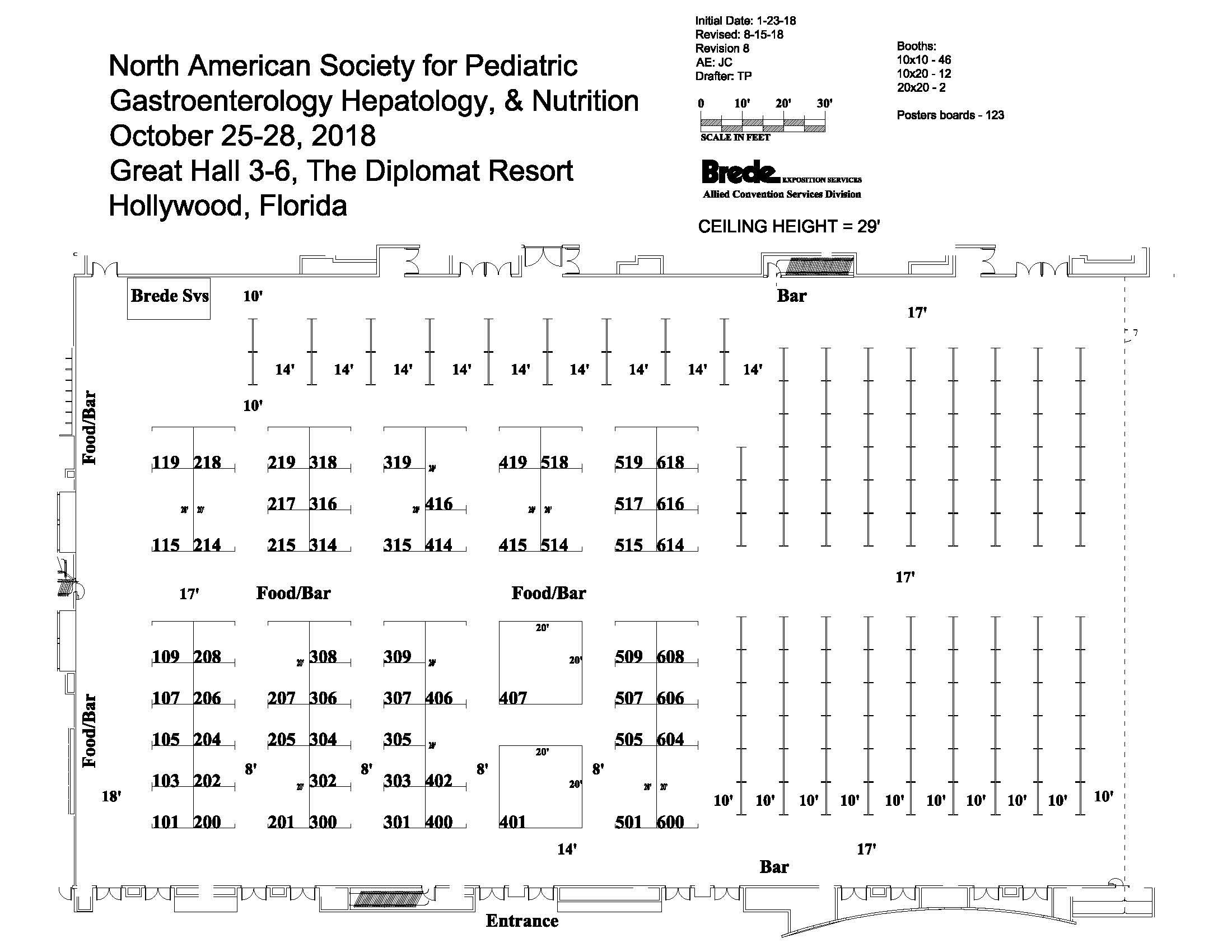 In the event of conflicts regarding space requests or conditions beyond the control of the exhibit management, NASPGHAN reserves the right to revise, relocate, or reassign exhibit booths at any time for the overall benefit of the meeting. A revised floor plan will be provided upon request.